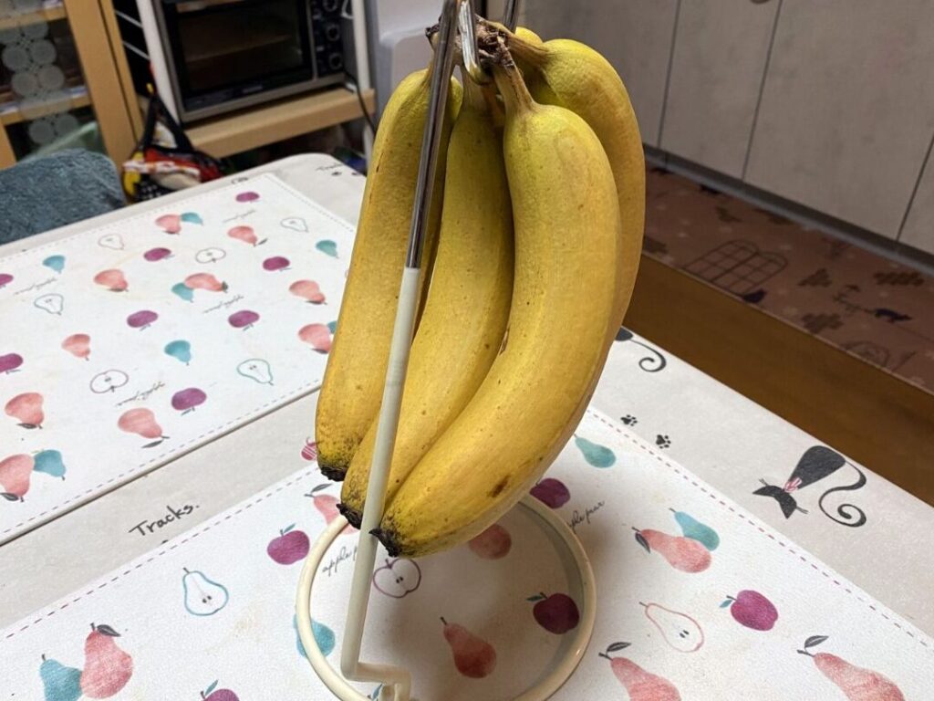 ペットボトルなどの空き瓶を利用して、その上部にバナナを置くことで安定させることができます。簡易的ですが効果的です。