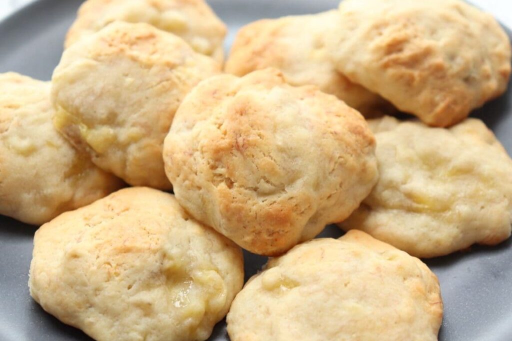 生地が完成したら、大さじ一杯程度ずつ取り出して天板に並べます。その後、180℃で約15〜20分焼きます。表面がほんのり色づいてきたら出来上がりです。